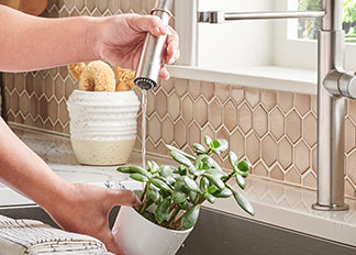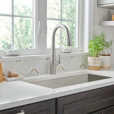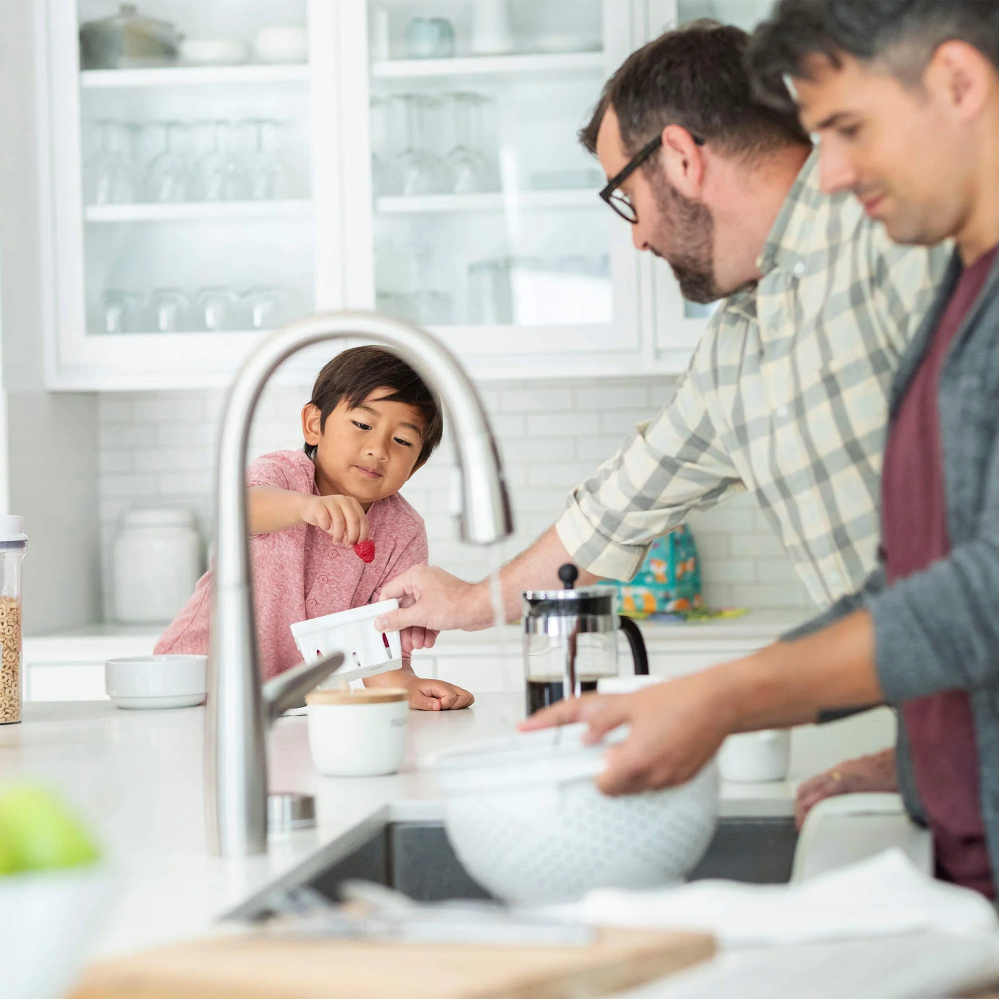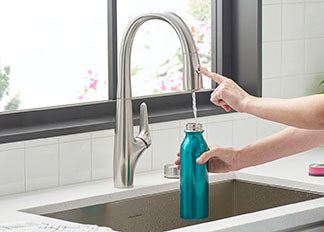 Plus besoin de pichet ou d’accessoires. Ce robinet filtre le plomb, le chlore et les particules de classe I. Le filtre facile à installer est accessible par le dessus du comptoir ou sous celui-ci. L’indicateur DEL signale quand le filtre doit être changé. Vous obtenez non seulement de l’eau de meilleure qualité, mais aussi un meilleur robinet.