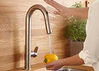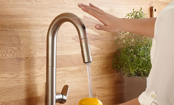 Le style contemporain et la technologie sans contact Selectronic du robinet de cuisine Beale fonctionnent aussi bien que.