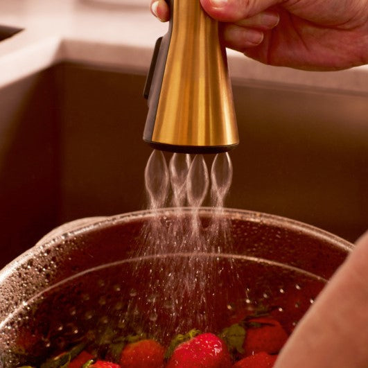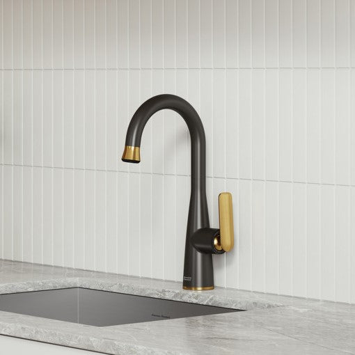 Taille parfaite pour un coin divertissement, avec un bec rétractable dirigé vers le bas à jet unique et SureConnect pour maintenir la pomme de jet.