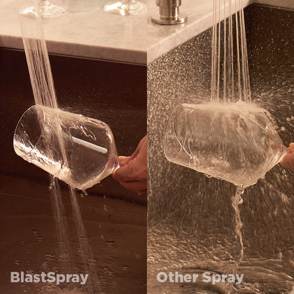 Le puissant BlastSpray nettoie, sans vous éclabousser, ni en dehors de l’évier*